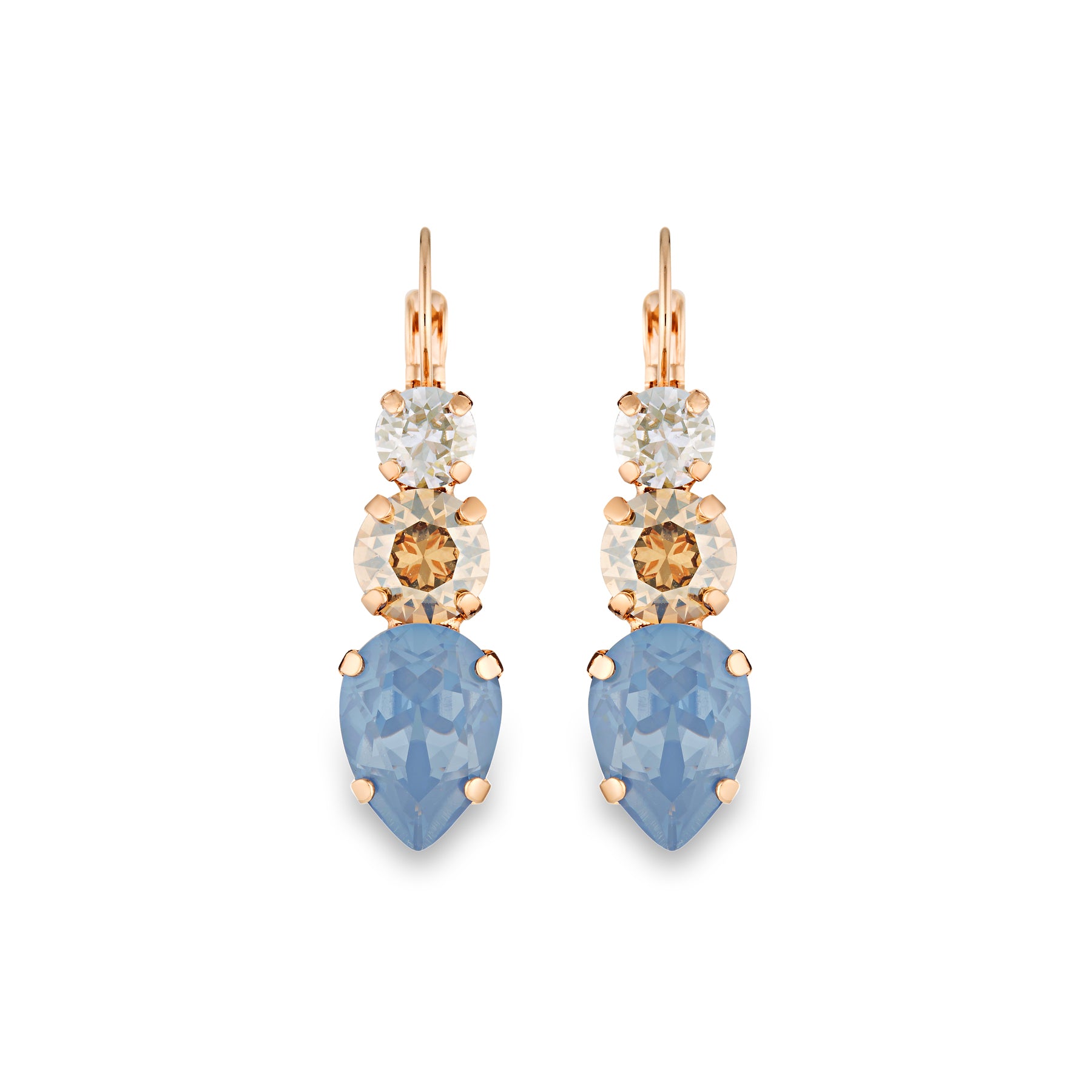 - Triple Crystal Setting: Adorned with denim ignite, golden shadow and blue shade crystals in a yellow or rose gold plated setting, these earrings offer a mesmerising display of elegance and sophistication.