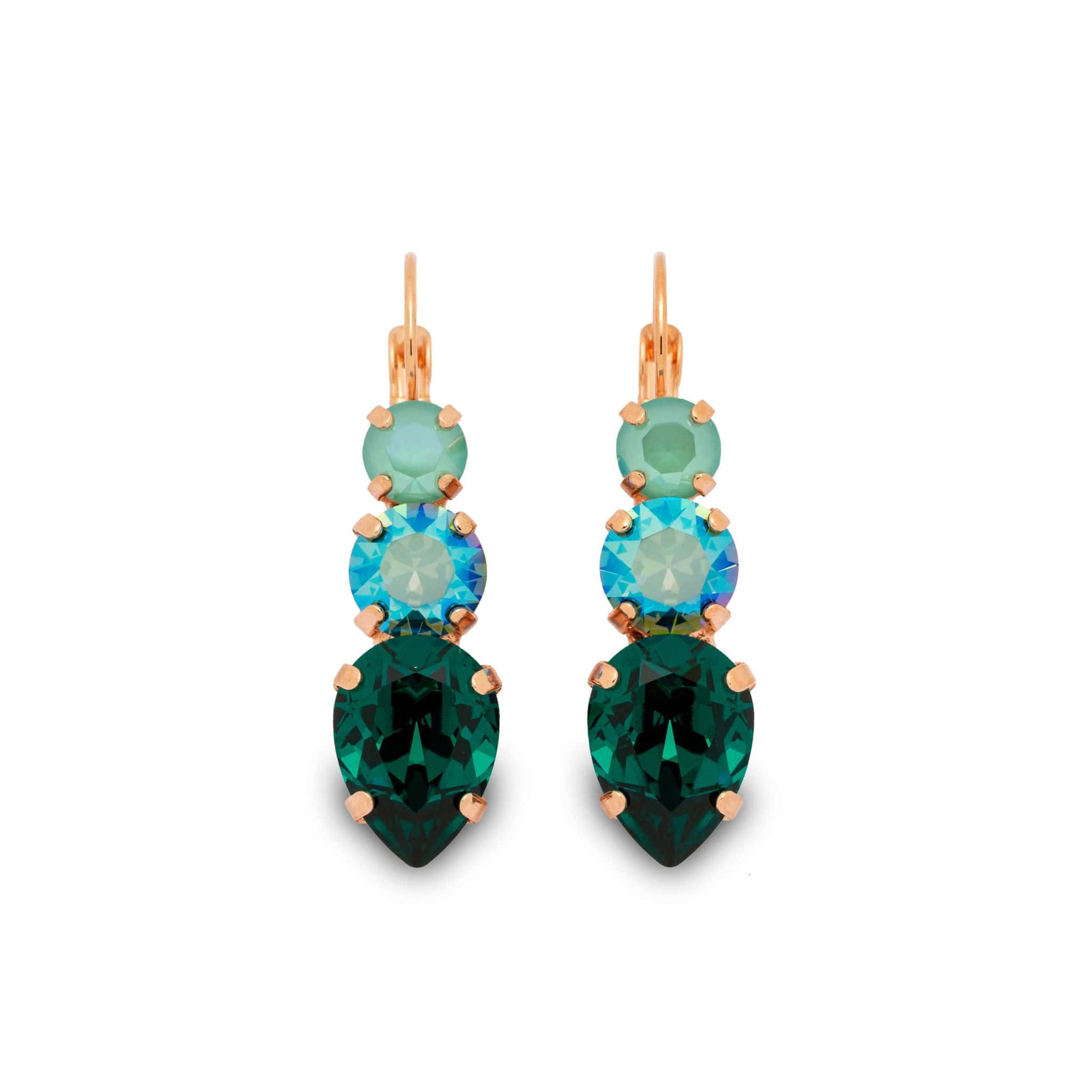 - Triple Crystal Setting: Adorned with emerald, erinite shimmer and mint green crystals in a romantic rose gold plated setting, these earrings offer a mesmerizing display of elegance and sophistication.