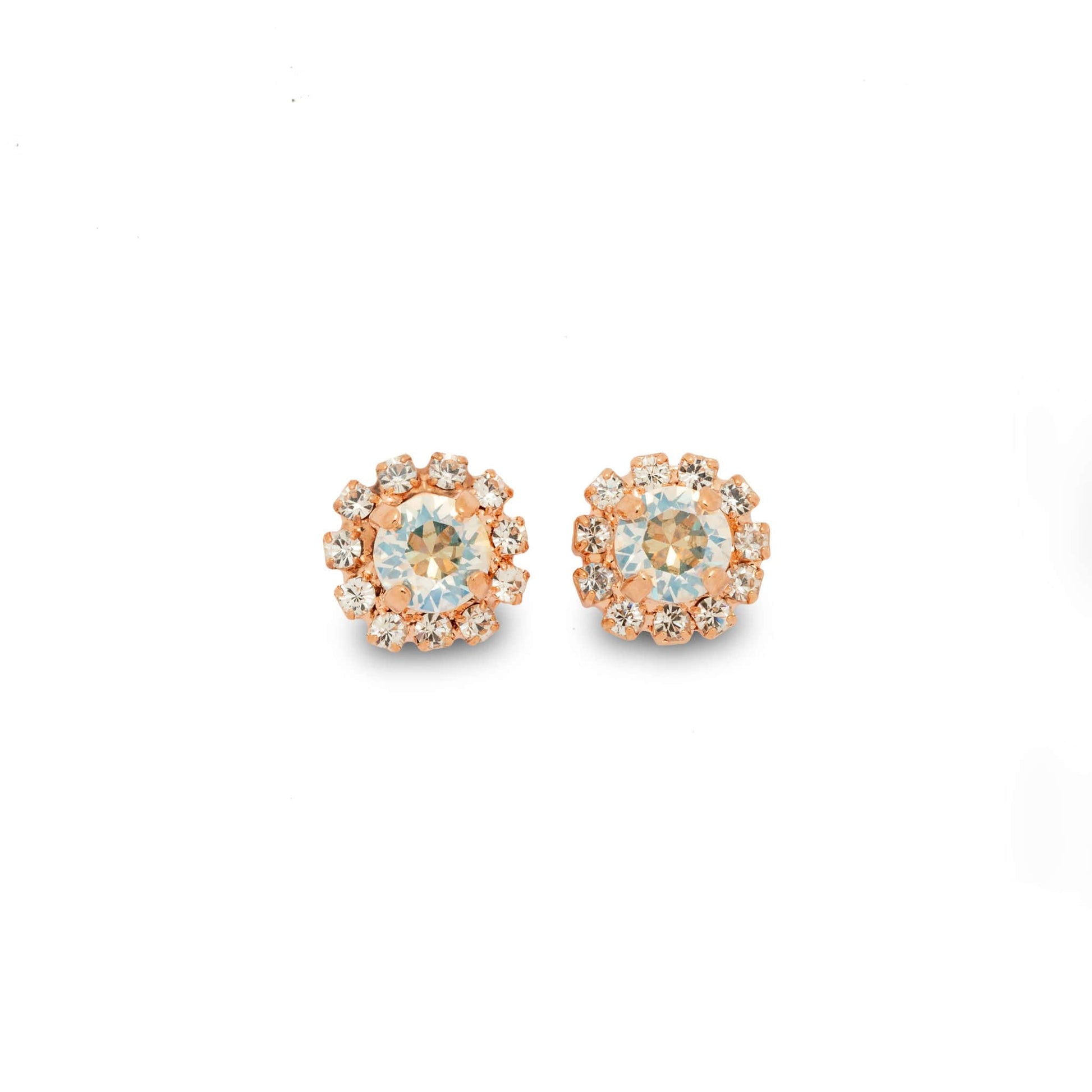 Radiate refinement with our Esme Moonlight Stud Earrings, featuring a dazzling 6x6mm Moonlight Austrian crystal encircled by clear crystal rhinestones. Crafted for illuminating elegance, these earrings exude timeless charm in a classic stud design. Perfect for adding glamour to any ensemble, they're meticulously crafted for exquisite allure.